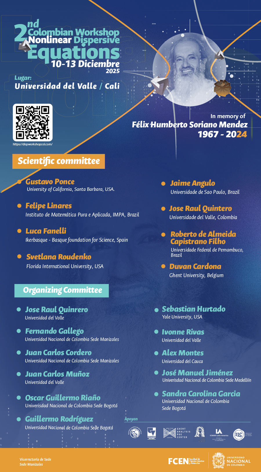 The primary aim of this workshop is to foster collaboration and knowledge exchange among both Colombian and international researchers who specialize in this area. By bringing together seasoned academics and promising young researchers, including post-graduate students, the event seeks to fortify and promote the latest advancements in this captivating field of study. Through this unique platform, researchers from diverse backgrounds will have the opportunity to interact, share their findings, and collectively contribute to the further enrichment of nonlinear dispersive equations research.